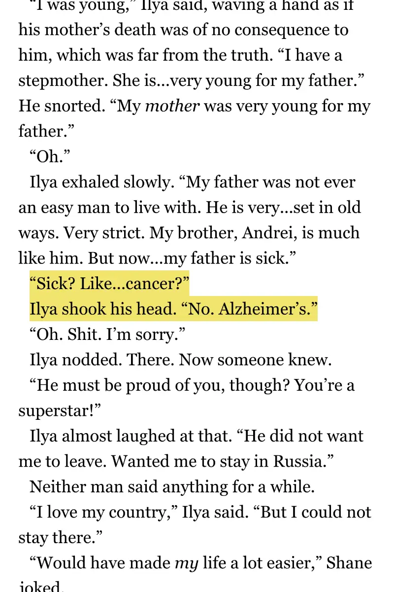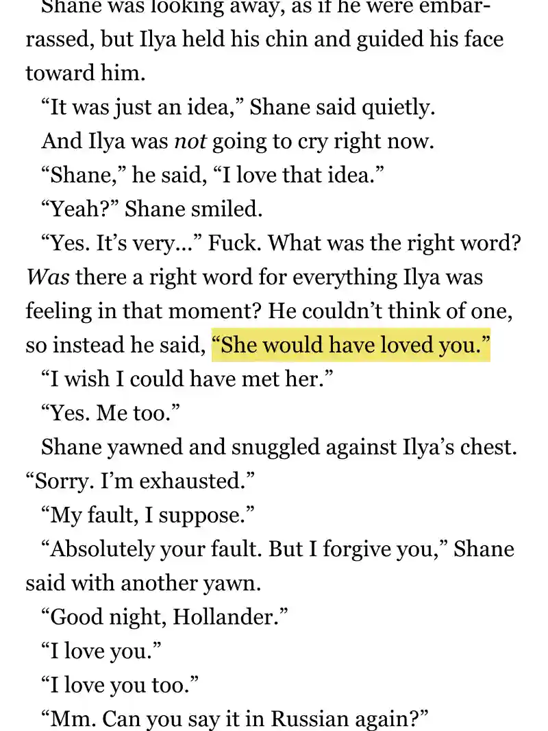 Ilya's Russian monologue doesn't exist in the book. That chapter is written from Shane's perspective, and he doesn't understand what Ilya is saying. The show created the monologue from scratch, and it became one of the most heartbreaking scenes in the season.