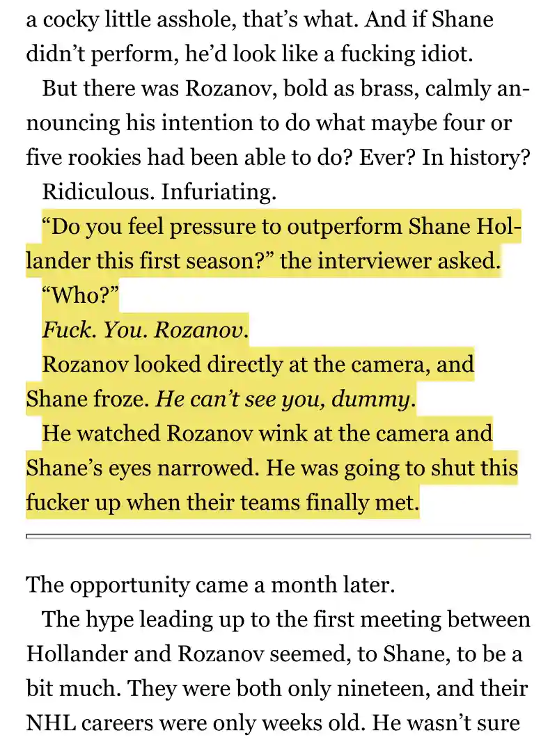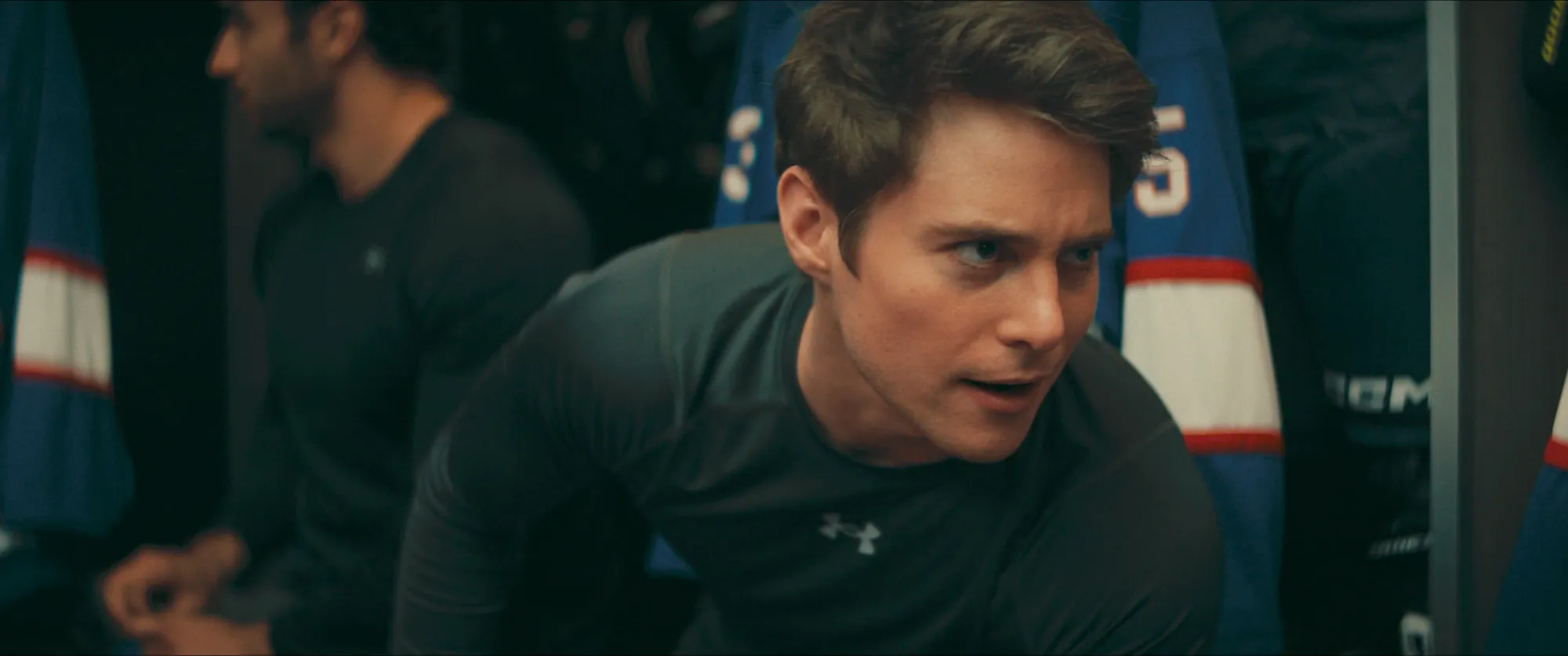 In the Tampa All-Star game coming out scene, in the book, Ilya doesn't cry after revealing his father had Alzheimer’s (which is changed to dementia in the show), and Shane therefore doesn't climb onto Ilya to comfort him.