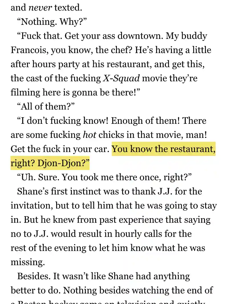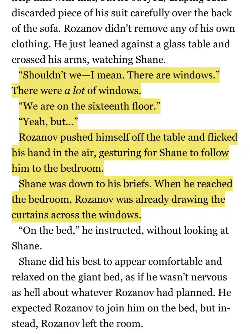 In the book, Shane's bottoming sex scene actually takes place earlier in a hotel room - before the episode 1 Vegas rooftop scene. Jacob adapted it and merged it with the Shane apartment visit scene. Lines like "you come here" "no, you come here" are borrowed from this first hotel room scene.